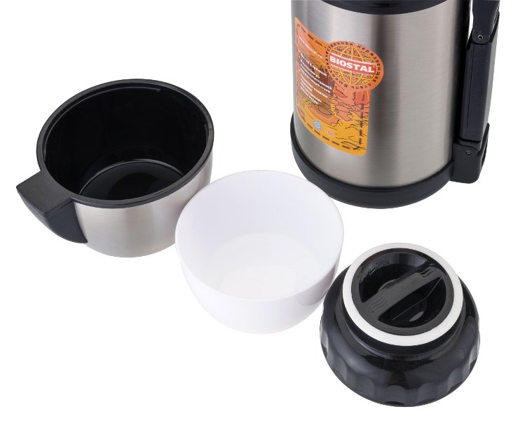 Конструкция пробки позволяет использовать термос как для напитков, так и для первых и вторых блюд