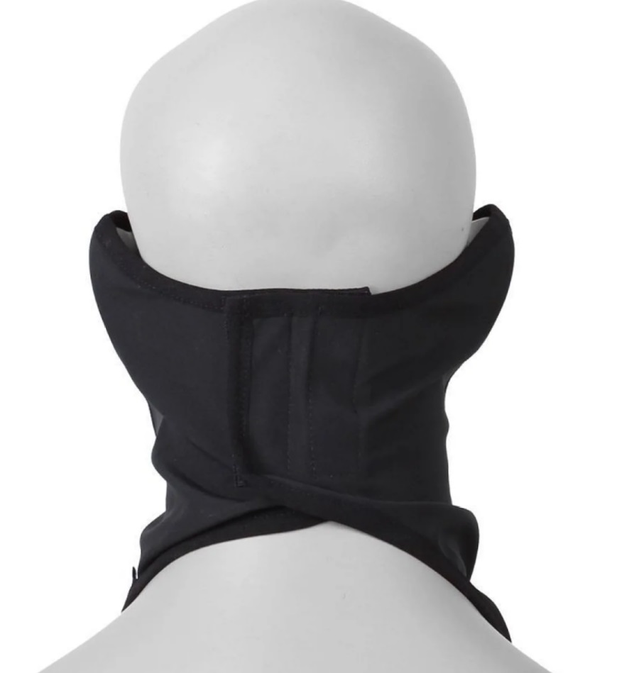 - Маска закрепляется с помощью застёжки Velcro на шее и дополнительно фиксируется горнолыжными очками-маской