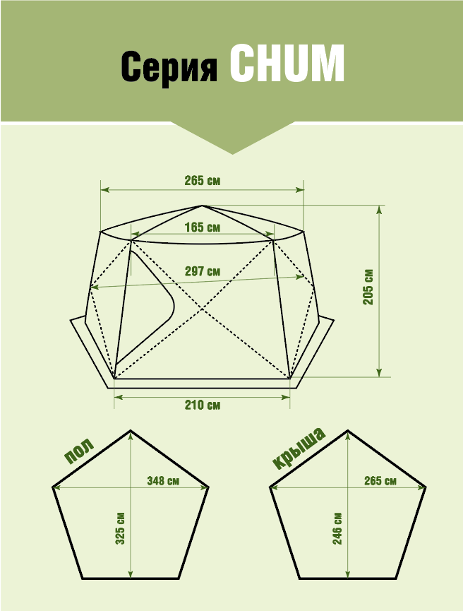 - Размеры внешней палатки: 330x330x210 см